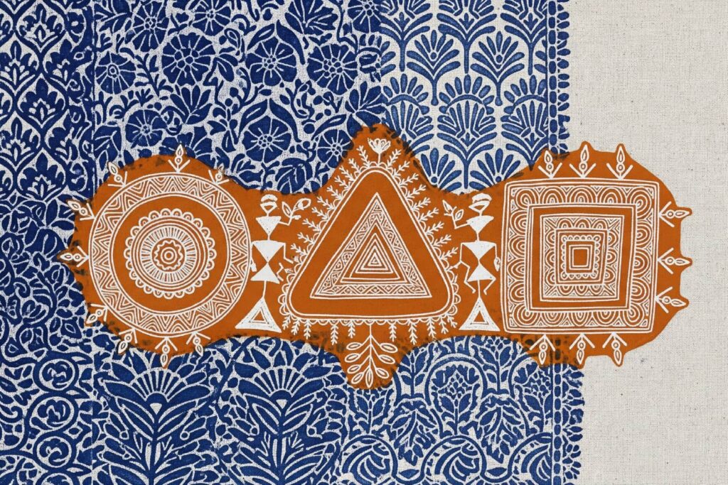 A circle, a triangle, a square. Three marks that once kept time with the monsoon songs of Maharashtra’s Warli villages now arrive in Mumbai’s glass towers as numbered editions. The same economy that tried to scrub them off mud walls now underwrites their survival.
