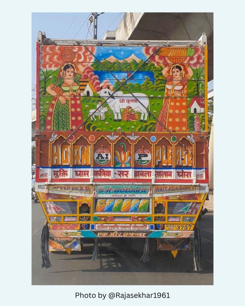 On India’s highways, no two trucks look the same. Some carry portraits of gods, others display fierce animals or poetic slogans, and almost all wear their hearts on their tailgates. These brightly painted vehicles are more than just tools of transport—they are moving galleries, declarations of personal belief, and expressions of pride, humour, and even protest.